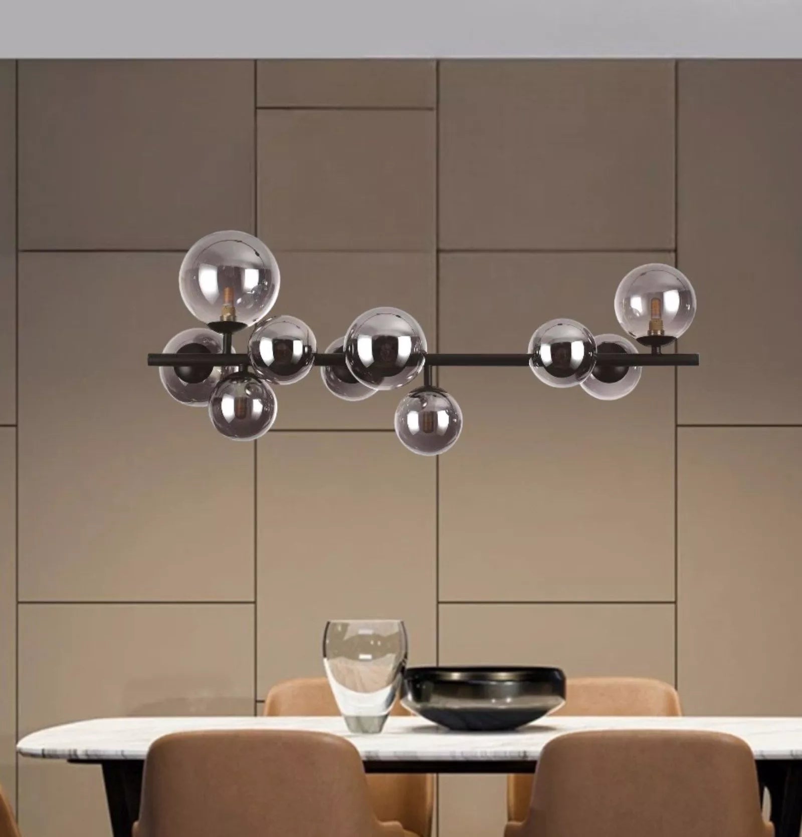 The Perlage pendant light from Italian company Ideal Lux combines modern design with luxurious details. The metal frame is available with either a round linear profile or a square profiled shape, and light uses a 6× G9 bulb for ample illumination in living rooms, dining rooms or representative spaces. The hand-blown glass diffusers add subtlety and elegance to the fixture, with options of matte black with smoky pyrex glass, or satin brass with white etched or amber glass, allowing you to customize the ambiance of the space from modernly dramatic to sophisticatedly timeless.