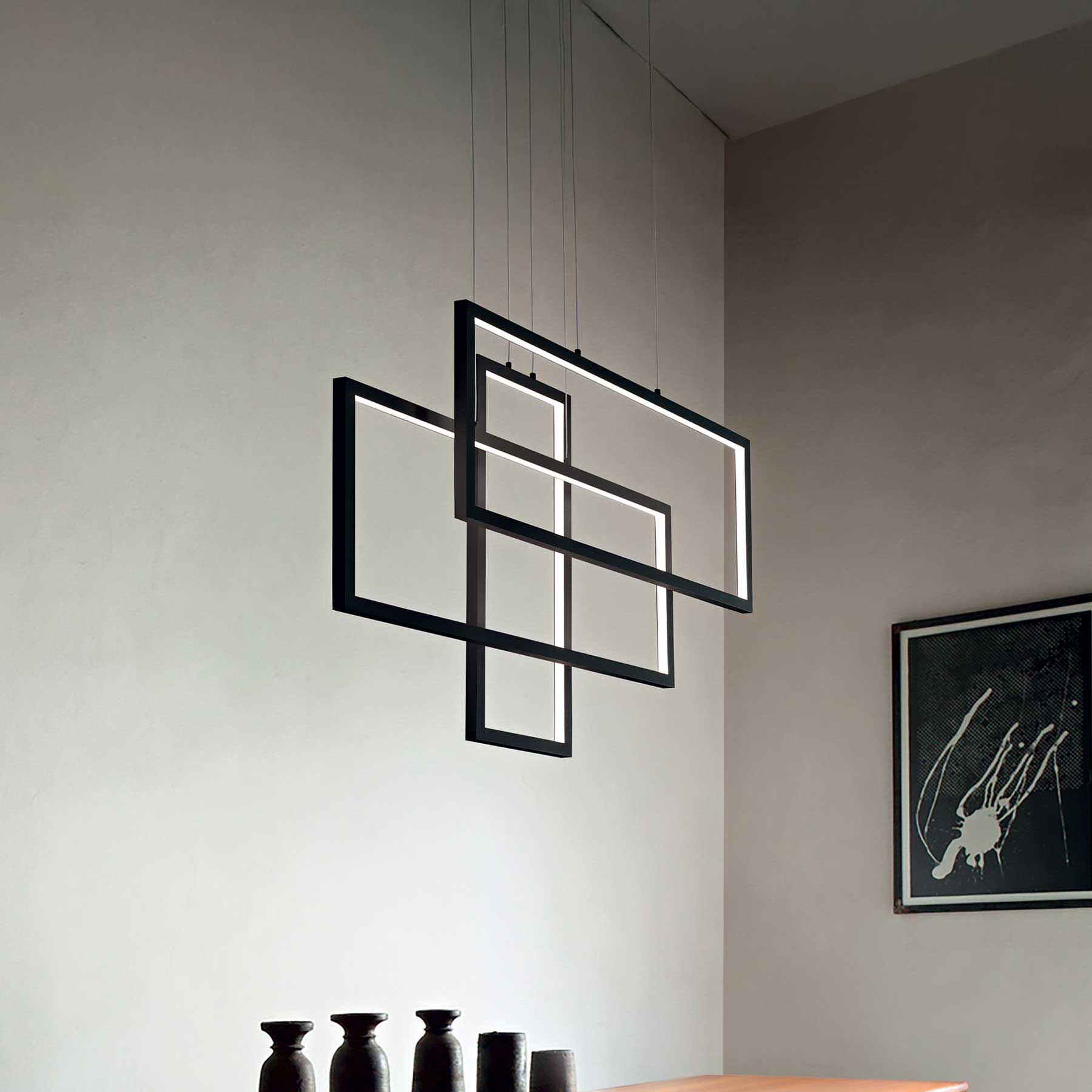 LED осветителното тяло Frame от Ideal Lux предлага модерен и минималистичен дизайн в квадратна, кръгла или правоъгълна форма, с матова бяла или черна метална рамка, основа и пластмасови разсейватели OPALE за мека разсеяна светлина. Регулируемите кабели улесняват регулирането на височината му, а LED технологията осигурява ефективно директно осветление - идеално за всекидневни, кухни или офиси. Изчистените линии и универсалният дизайн позволяват както самостоятелна употреба, така и интересни композиции при комбиниране на няколко елемента.