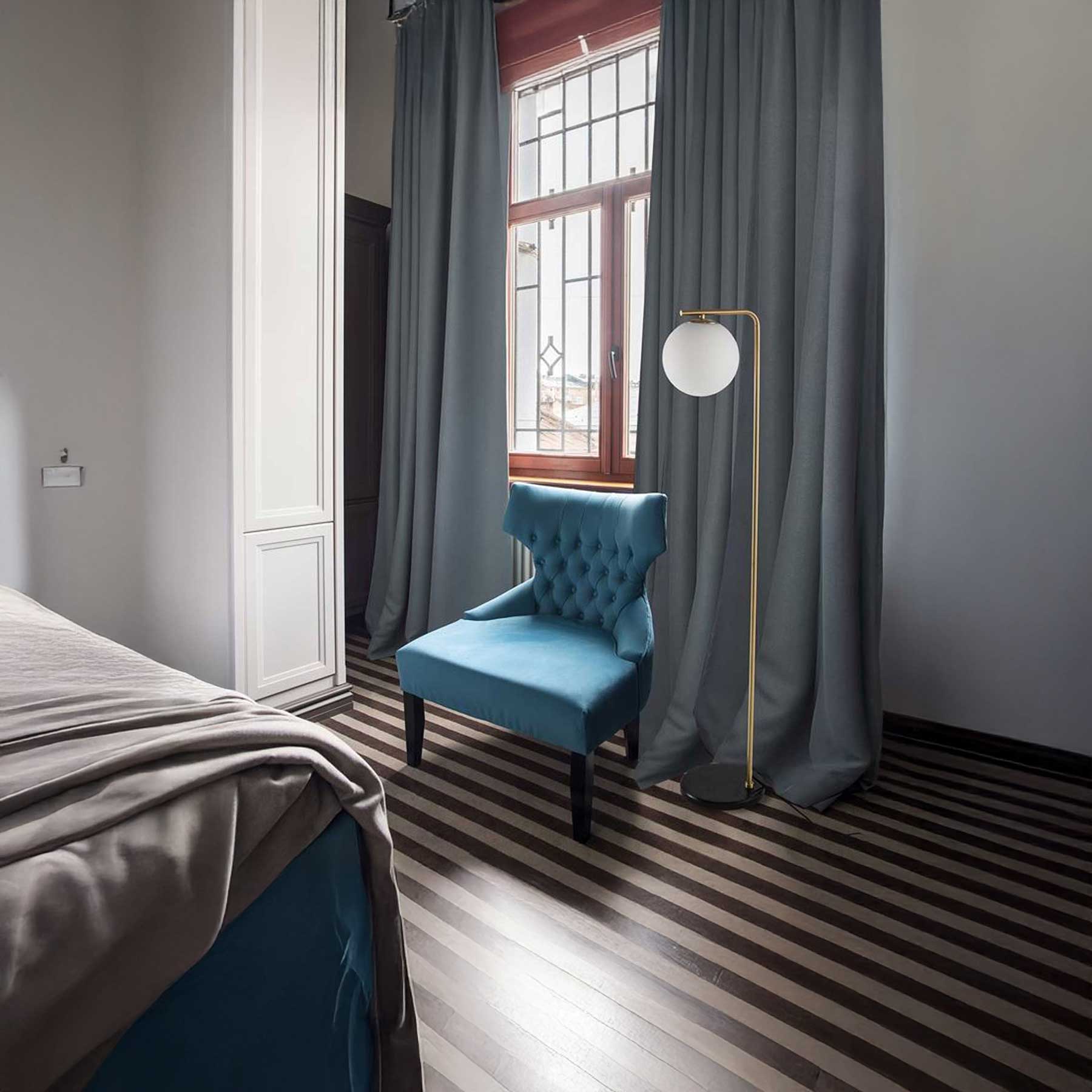 Подовата лампа Alvarez на гръцката компания Nova Luce е елегантна комбинация от модерен дизайн и класическа естетика. Състои се от тънък метален прът с месингово покритие, увенчан със сферичен абажур от матирано бяло стъкло, който приятно разсейва светлината. Стабилността е гарантирана от основата от черен мрамор. Осветителното тяло е предназначено за крушка Е27, което позволява използването на различни видове светлинни източници според предпочитанията. Благодарение на минималистичния си, но изтънчен вид, то е подходящо както за модерен, така и за класически интериор като допълващо осветление, например във всекидневната, спалнята или къта за четене.