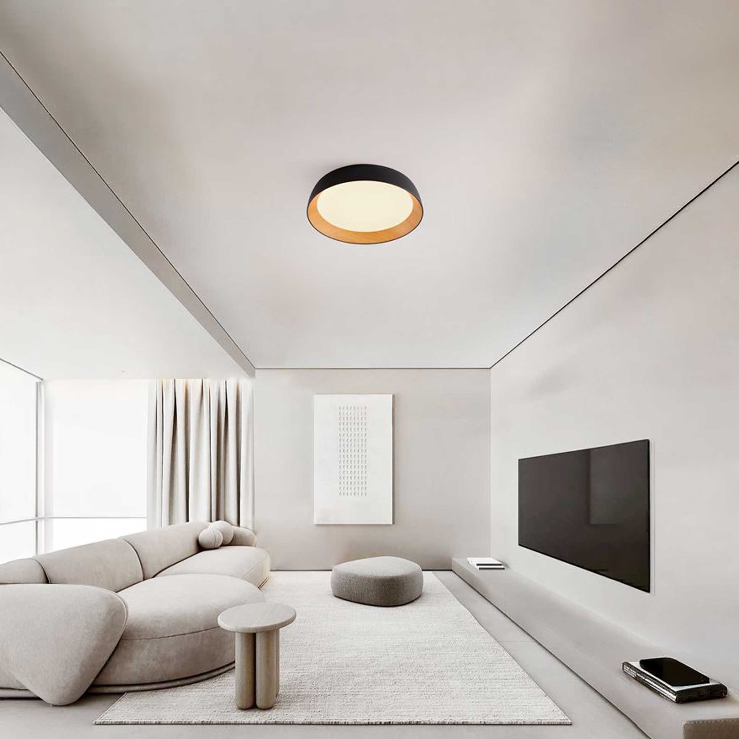Осветителното тяло за таван Sigi на гръцкия производител Nova Luce е елегантна комбинация от минималистичен дизайн и естествени елементи. Изчистената му кръгла форма в съчетание с финия дървесен декор от вътрешната страна създава приятна и уютна атмосфера, която се вписва идеално както в модерни, така и в скандинавски интериори. Корпусът на лампата е изработен от висококачествен алуминий, а акрилният разсейвател осигурява равномерно разпръскване на светлината без отблясъци.